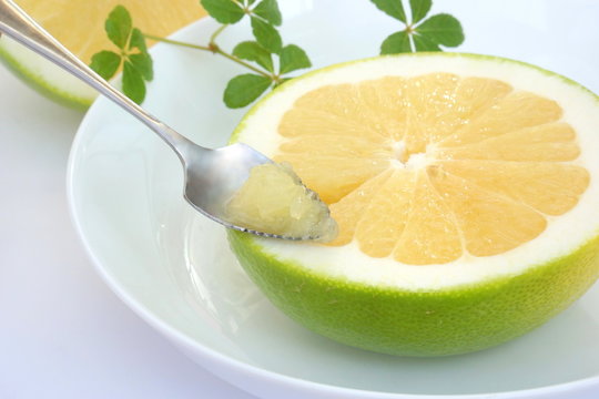 果皮の色は黄緑色から黄色で、見た目はグレープフルーツに似ていますが、酸味が少なく、しっかりとした甘みを感じられるのが特徴です。苦味もほとんどなく、やわらかな果肉とたっぷりの果汁で、さわやかな甘さを楽しむことができます。